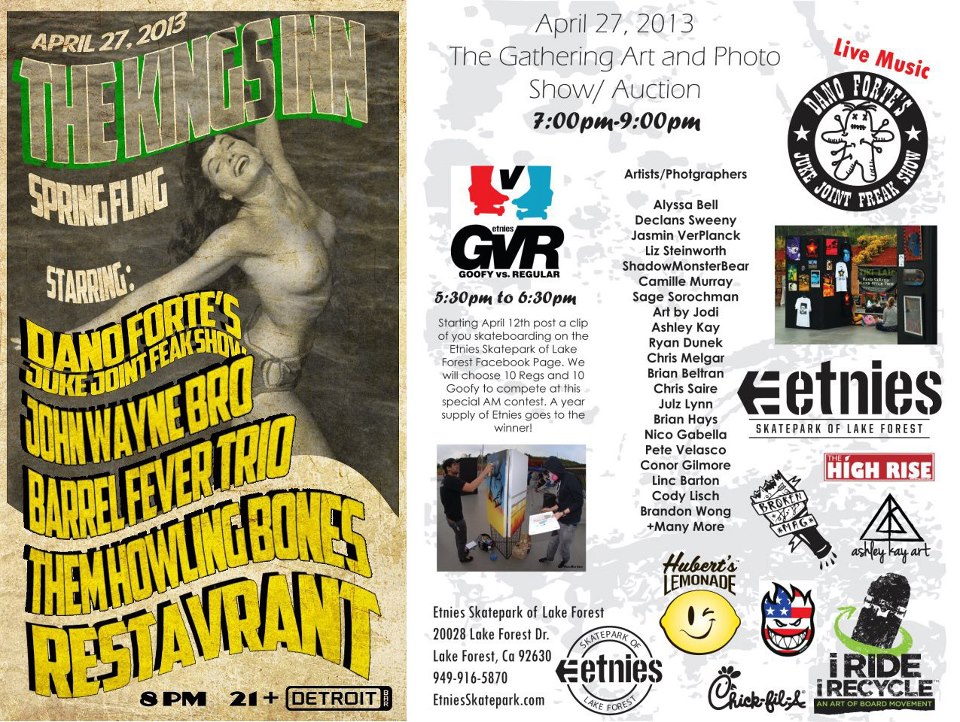 Two great Show today. First one is at the Etnies Skate Park in Lake Forest from 7:00 till 9:00 this is all ages. Then we are off to the Detroit bar in Costa Mesa from 9:30 to 1:30 to play with some great bands!!!!!!!!!! Hope to see ya out and about