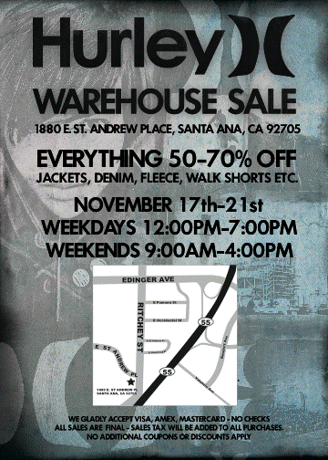Hurley WAREHOUSE SALE